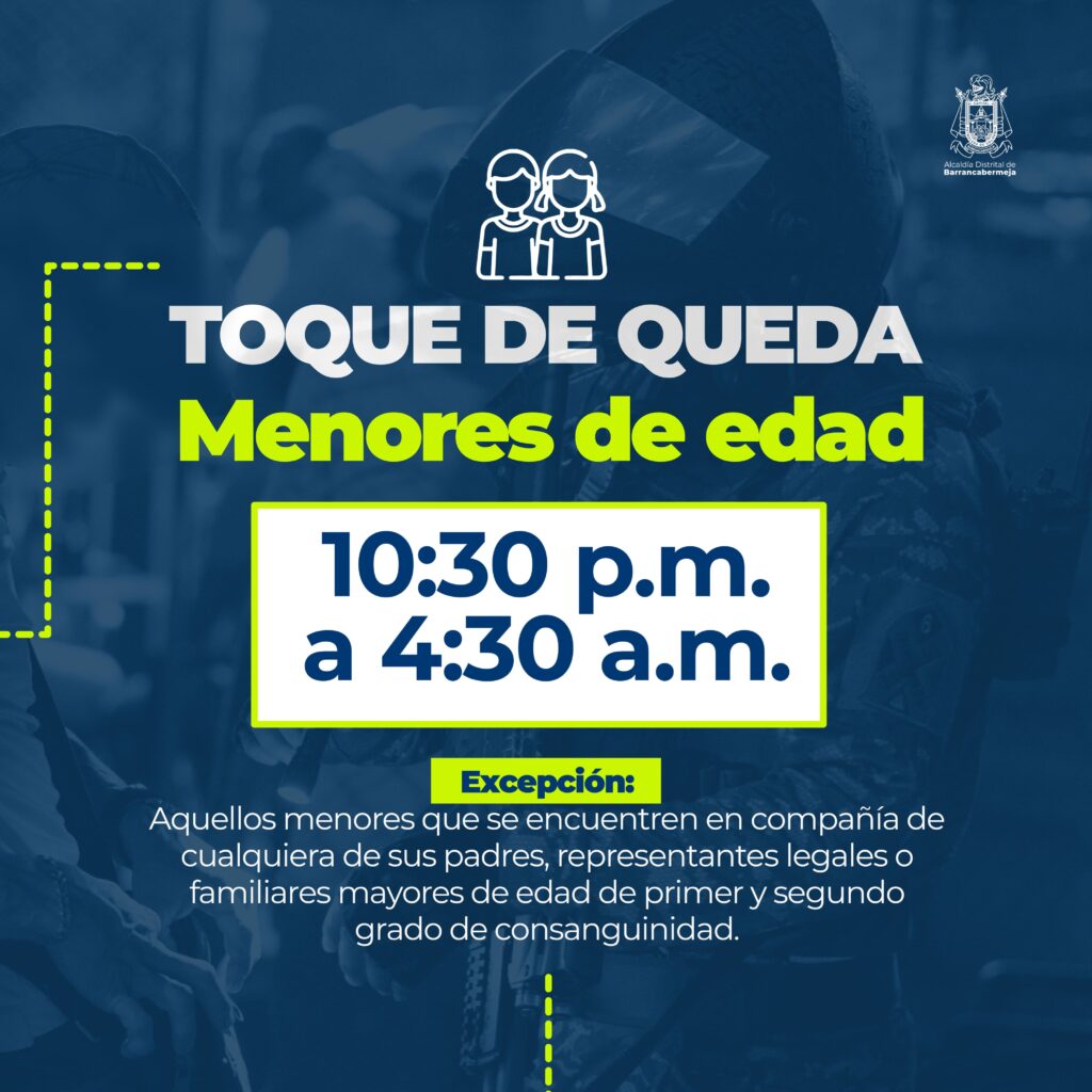 🚨 Toque de queda para menores de edad, quienes no podrán circular por las calles de la ciudad o estar en lugares abiertos al público sin un adulto responsable, entre las 10:30 p.m. y las 4:30 a.m. del día siguiente. Esto tendrá una vigencia de 6 meses.